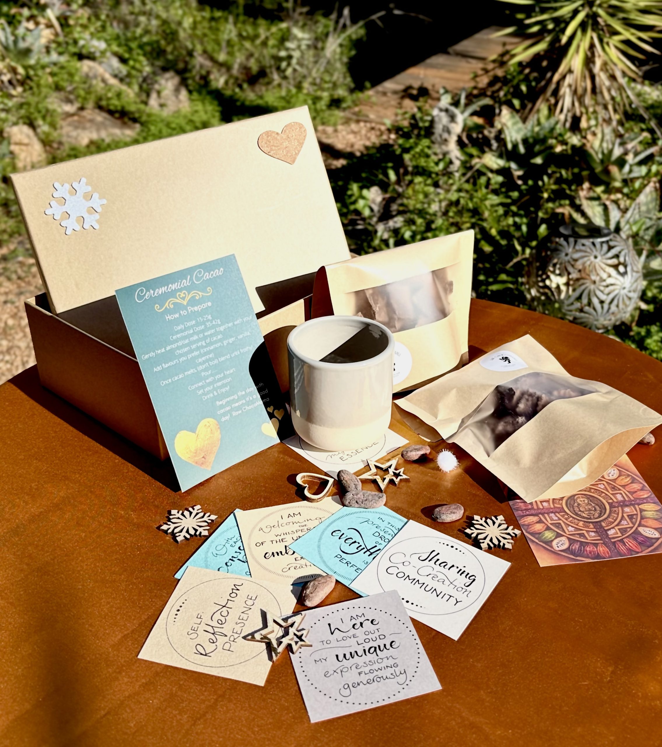 This is a beautiful gift box for a cacao lover in your life! Whether a seasoned cacao drinker or embarking on a new routine. Are you switching out coffee for cacao – I know I did! I’ve packaged together a cute box with all that you need to start your day with a little self-love ritual.