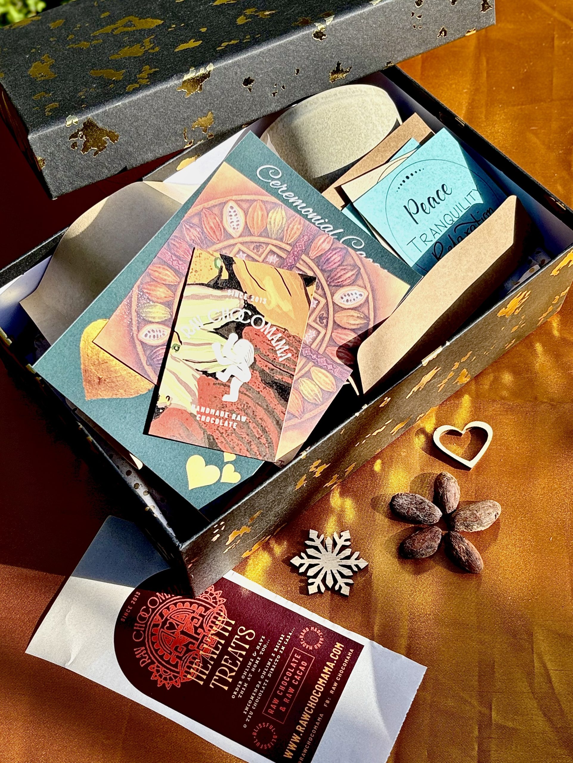There is also a little card explaining how to prepare ceremonial cacao, a beautiful Cacao Goddess image and a Raw ChocoMama sticker!